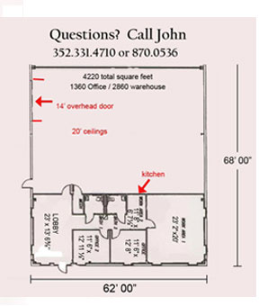 • 4220 Square feet total (1360 office plus or minus and 2860 warehouse)